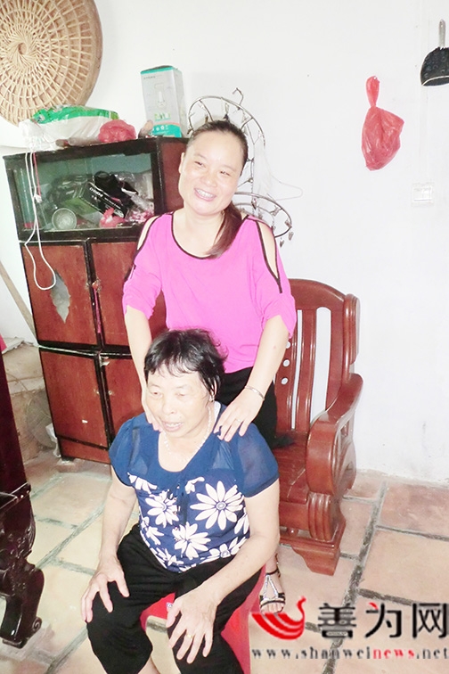 朱霞的家公2000年因中风变成植物人,服侍他的重任全落在她身上,她丈夫共有三兄弟,兄长和弟弟全家都外出工作。她一手包揽了喂食、擦浴、翻身、按摩等活儿,十年如一日,直到老人去世。同时还要照顾年幼的孩子,把所有的爱都奉献在家庭上。她婆婆是农村妇女,体弱多病,也需要朱霞的照顾。家婆逢人便说:“没有儿媳的照顾她早就没命了。”记者在她家见到,婆媳关系如母女,一家其乐融融。