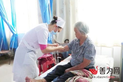 记者在医院目睹了做起护理工作来有点雷厉风行的朱霞一会到病房、一会配药楼上楼下来回穿梭着,总是以微笑面对病人……