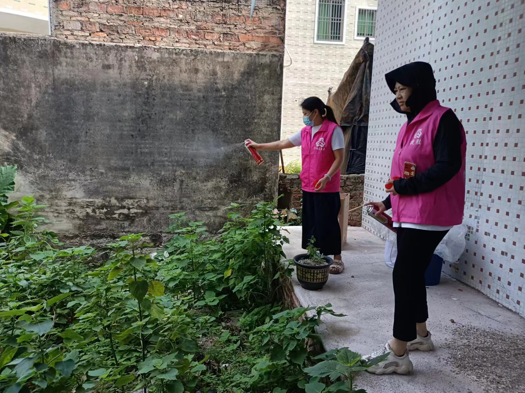 华侨管理区巾帼志愿者通过入户走访、现场讲解、发放资料等方式,向居民普及基孔肯雅热预防知识,重点说明蚊虫孳生危害及清理要点,引导居民养成每日清理的习惯,规范堆放杂物、清除杂草,同时提醒注意防灾防汛,保障自身安全。