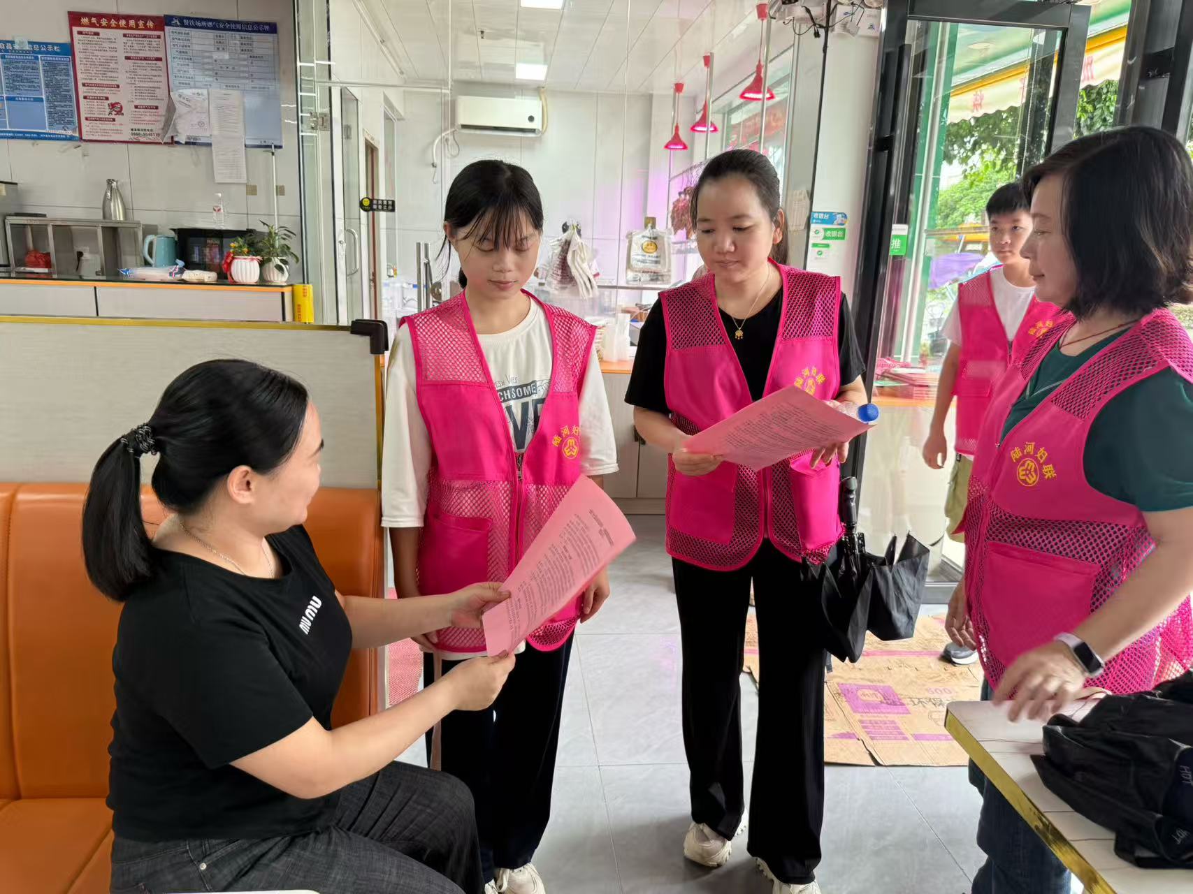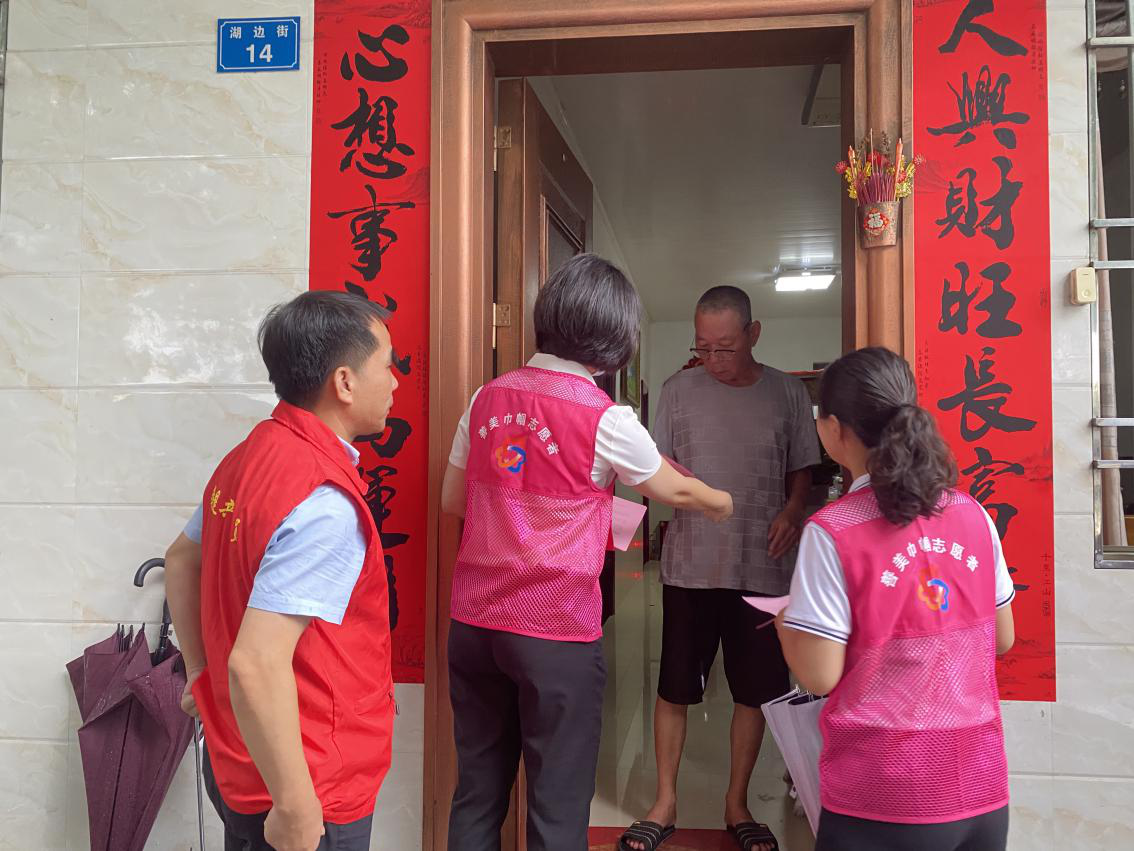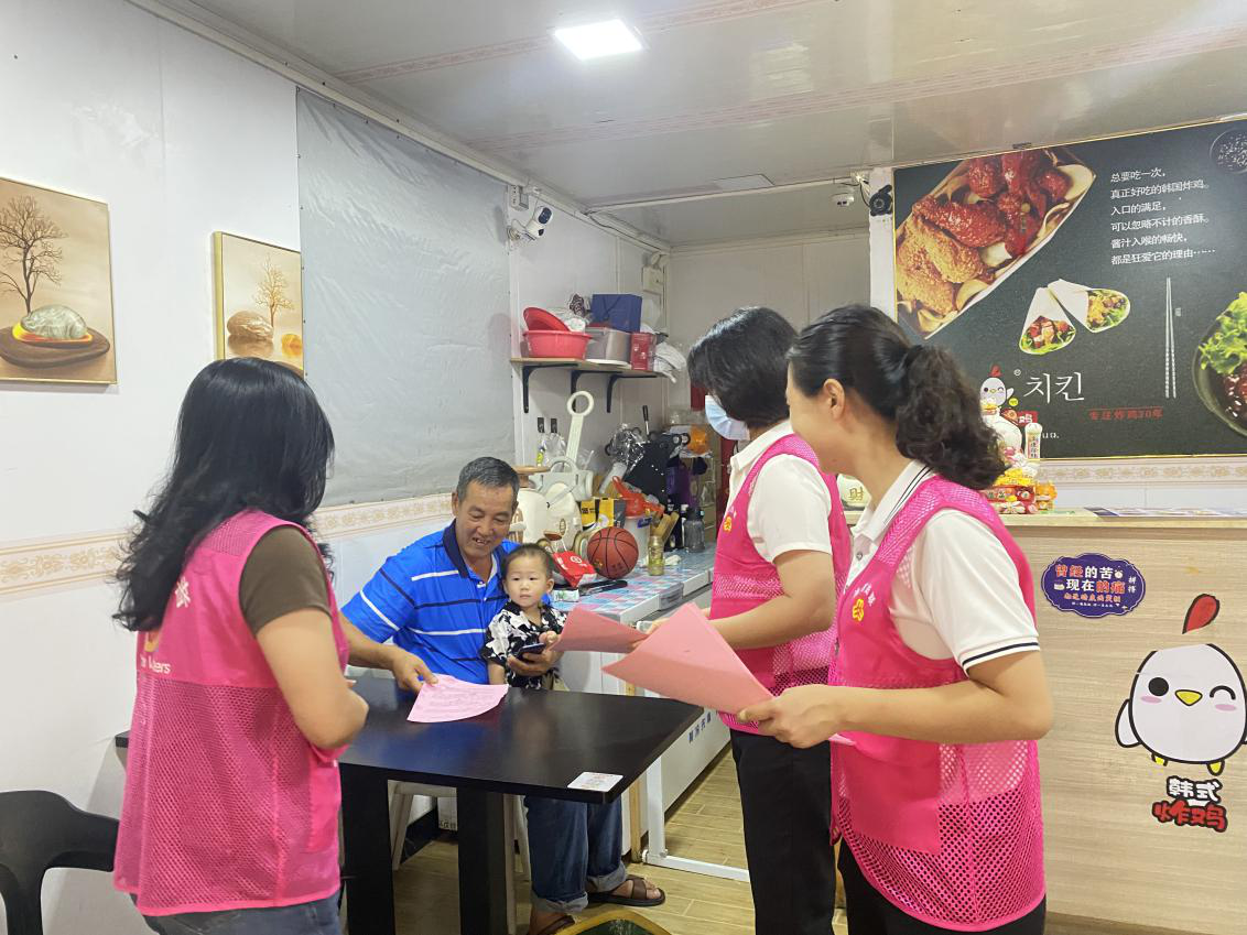 善美巾帼宣讲服务项目志愿者代表就近在海丰县南门社区,向社区居民、商铺发放基孔肯雅热防控倡议书,宣传防蚊灭蚊的重要性,提醒广大群众及时清理积水,共同维护干净整洁的良好环境。
